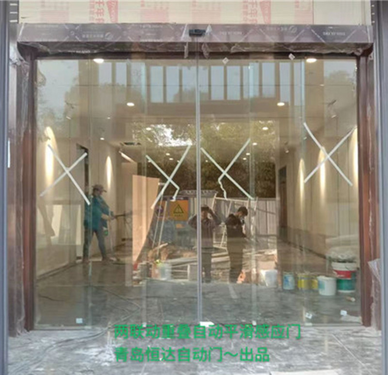 市北区郑州路43号橡胶谷赛轮集团橡塑新材料大楼两联动重叠自动平滑感应门已投入使用。